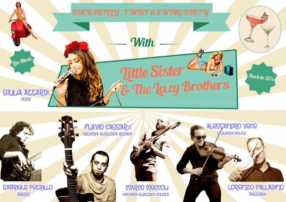 Little Sister & The Lazy Brothers è composto da 6 componenti con l’aggiunta di un settimo elemento a seconda del tipo di performance richiesta: