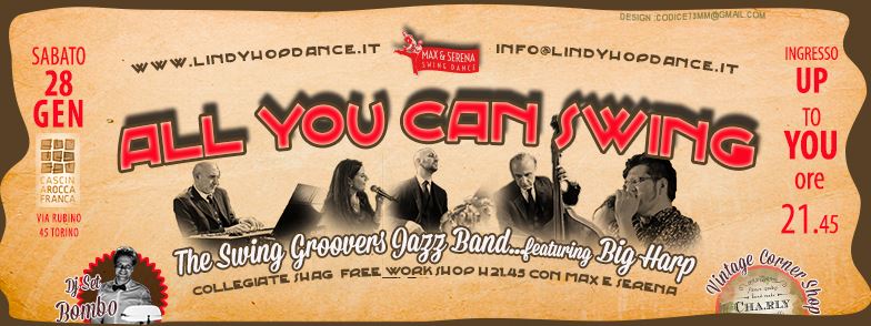 – LIVE MUSIC con THE SWING GROOVERS JAZZ BAND featuring Big Harp!