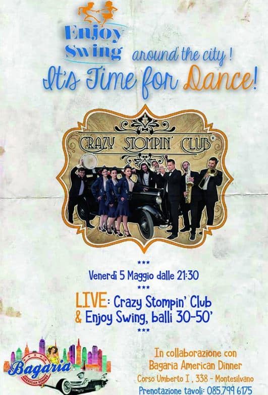 Continua la tripletta di appuntamenti in stile Vintage. Questa volta, a musicare i passi della frizzantissima scuola di danza Enjoy SWING, saranno i favolosi Crazy Stompin’ Club. Se cerchi una serata all’insegna del ritmo, del divertimento, del ballo e del gusto, non puoi perdere questo appuntamento!!!