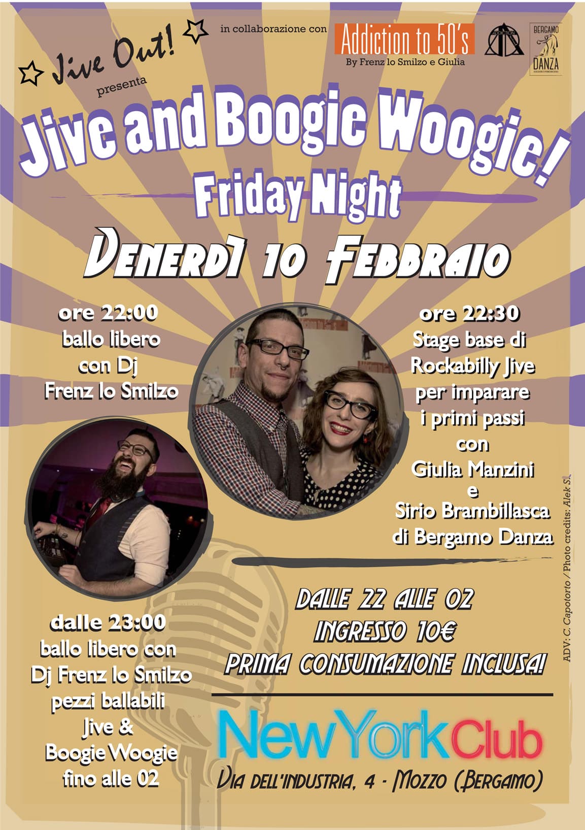 JIVE OUT, in collaborazione con ADDICTION TO 50’s by Frenz lo Smilzo (Addiction school) e Giulia Manzini (Bergamo Danza), sono felici di presentare la serata