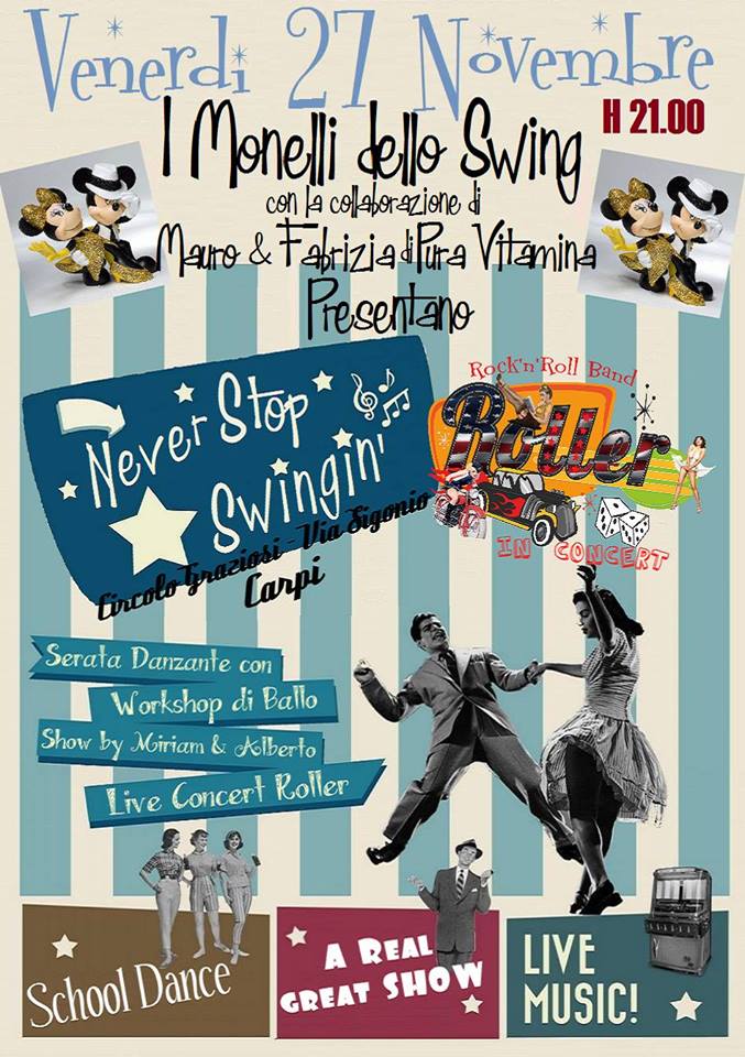 Tanto rock’n’roll e tanto swing da ballare, con DJ set e band dal vivo! Durante la serata workshop gratuito by I Monelli dello Swing SSD A RL e Pura Vitamina, oltre allo strepitoso live concert by ROLLER!