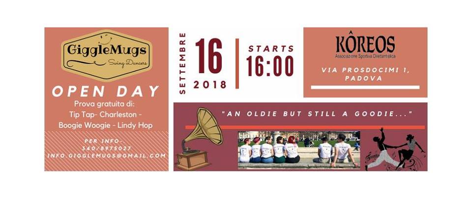 Vi aspettiamo il giorno 16 Settembre alle 16:00 c/o la scuola di Danza Koreos per un pomeriggio alla scoperta di quattro discipline Swing: Lindy Hop, Boogie Woogie, Tip Tap, Charleston.