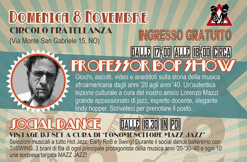 Esordisce domenica 8 novembre a Novara il Professor Bop Show che Lorenzo Mazzi porterà in giro (insieme al social dancing del fonomescitore Mazz Jazz) nella stagione autunno-invernale.