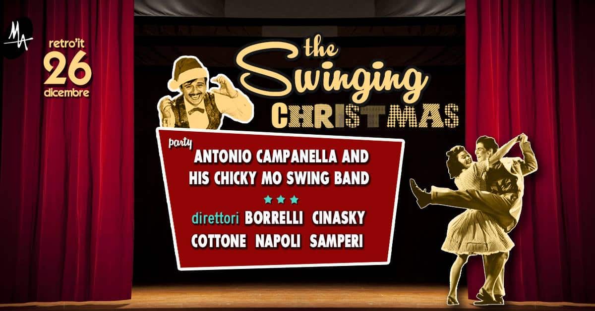 Dopo il fulminante esordio della Retro’it Orchestra, ecco il classico appuntamento con il nostro party natalizio che vede l’acclamato ritorno del nostro crooner siciliano per eccellenza Antonio Campanella e la sua Chicky Mo’Swing Band che avete potuto apprezzare lo scorso anno. Atmosfere Swing e Confidential nella migliore tradizione musicale 50’s & 60’s americana. Seguirà la solita festa a 10 mani dei direttori Borrelli | Cinasky | Cottone | Napoli | Samperi con il sempre infuocato e spensierato dj set a tutto tondo !
