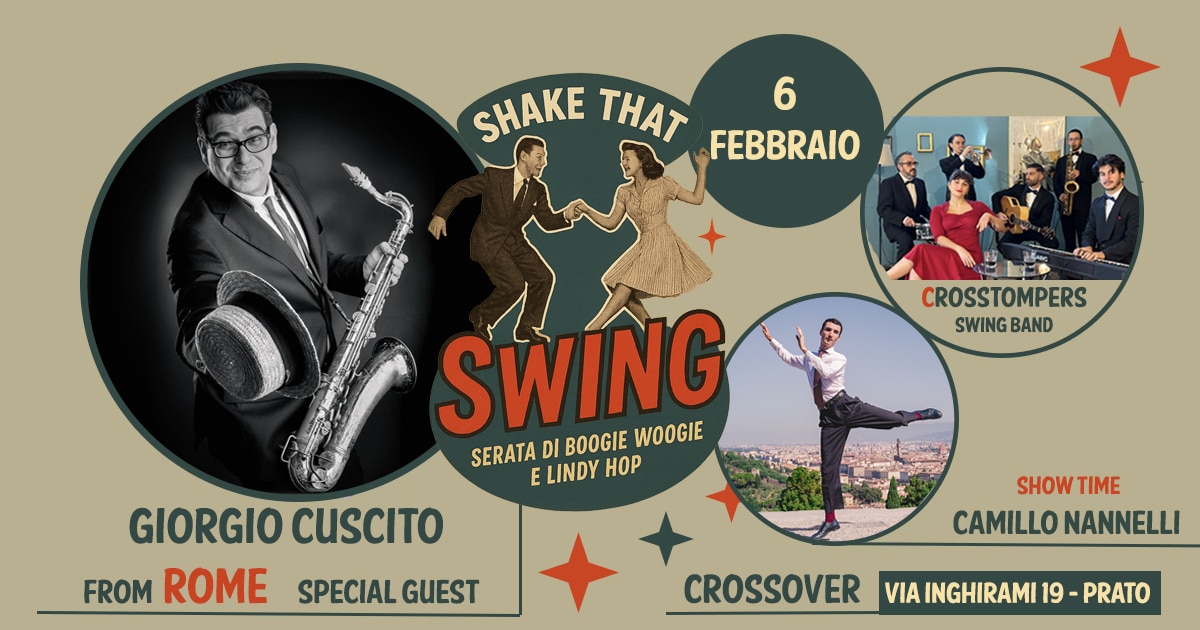 Al Crossover Ballroom di via Inghirami 19, Prato, torna un’altra Shake that SWING, la serata tutta dedicata agli amanti del Boogie woogie e del Lindy Hop.
