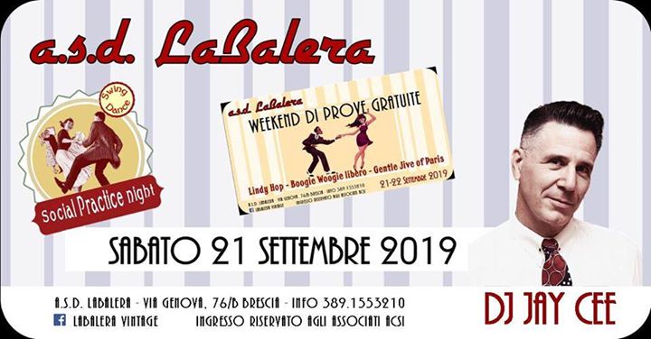 Nell’ambito del weekend di prove gratuite dei corsi di Jentle jive of paris, lindy Hop e Boogie woogie libero, durante la serata di sabato sarà Jay Cee da Parigi che ci farà ballare a più non posso… la serata sarà aperta a tutti per dar la possibilità ai non associati di vedere di persona cosa propone l’associazione e in che modalità.