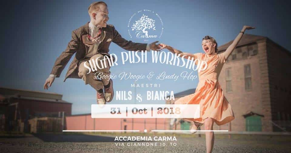 Il workshop del 1° novembre organizzato da CapCap Eventi Swing è sold out, ma ad Halloween tutto può capitare: il 31 ottobre il Carma riceverà Nils e Bianca in collaborazione con Cap Cap Eventi per tre ore supplementari di lezioni di livello intermedio: 1,5 ore di lindy hop con focus sulle variazioni di ritmo + 1,5 ore di boogie woogie con focus sull’improvvisazione.