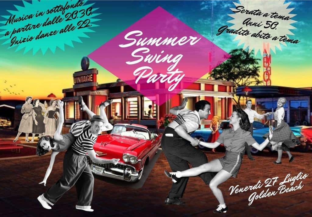 Il Golden Beach diventerà il punto di riferimento, oltre che per le serate a tema Swing, anche per i corsi estivi con lezioni dedicate a chi vuole avvicinarsi e conoscere lo Swing con lezioni primi passi e lezioni per chi possiede già le basi seguendo corsi da almeno 3 mesi.I corsi saranno tenuti dai maestri della Black Stars il lunedi e mercoledi per tutta la stagione estiva!!!