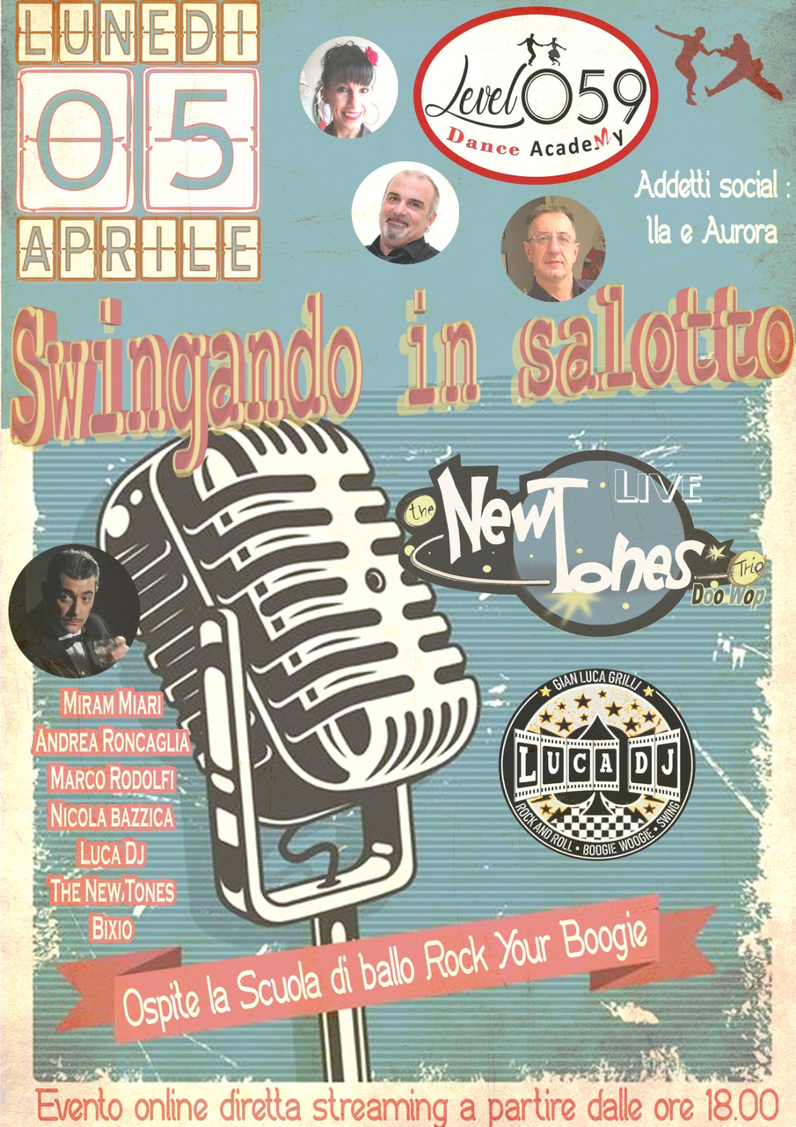 LUNEDI’ 5 APRILE 2021 dalle ore 18:00, collegatevi al nostro CANALE YOUTUBE Level 059 Dance Academy, per la nostra diretta live streaming, ci sarà da divertirsi!