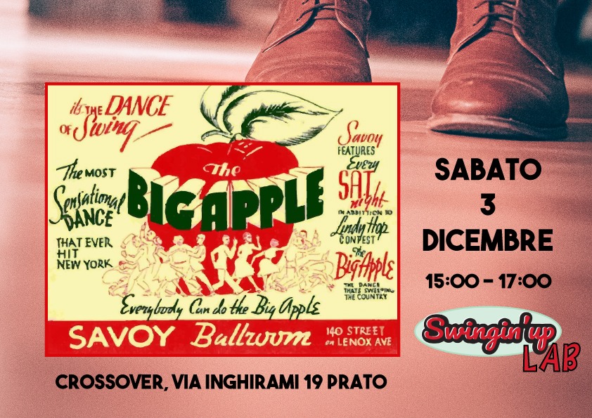 Swingin’up LAB vi dà appuntamento sabato 3 dicembre, dalle 15:00 alle 17:00, in via Inghirami 19 (Prato) con una lezione condotta da Marco & Eleonora tutta dedicata alla Routine di Big Apple.