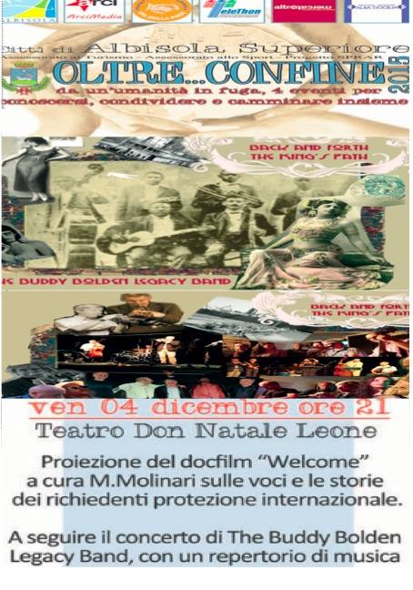 La BBLB è lieta di partecipare all’apertura della rassegna Oltre Confine dedicata al delicato tema delle migrazioni, dell’accoglienza e dell’integrazione. Dopo la proiezione del documentario “Welcome” di M. Molinari, saremo lieti di intraprendere il nostro viaggio attraverso i luoghi, i personaggi, la storia, ma soprattutto attraverso il Jazz.