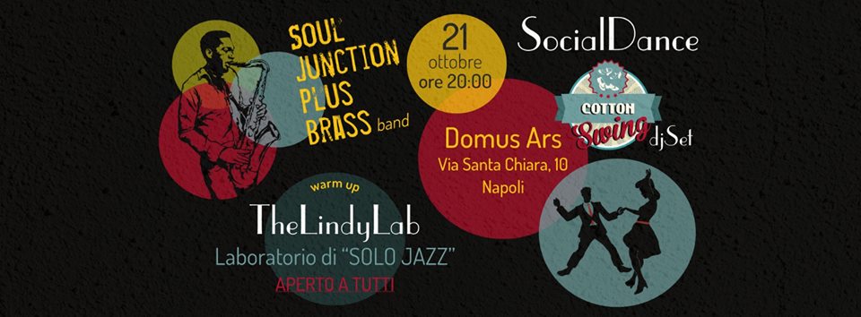 Arriva finalmente il primo appuntamento con The Lindy Lab e, per aprirlo alla grande, in quest’occasione avremo a seguire il live dei Soul Junction plus Brass, che delizieranno i nostri piedi con un repertorio perfetto per noi Lindy Hoppers e per chiunque voglia scatenarsi in pista!