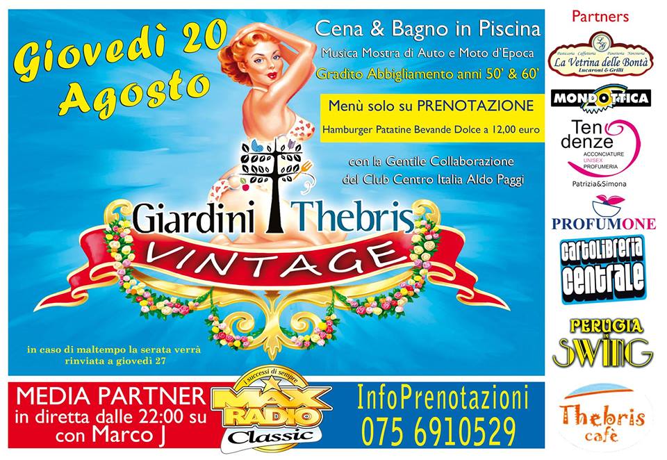 Cena e Festa anni 50 ai Thebris con cena in Terrazza e Party in Piscina.