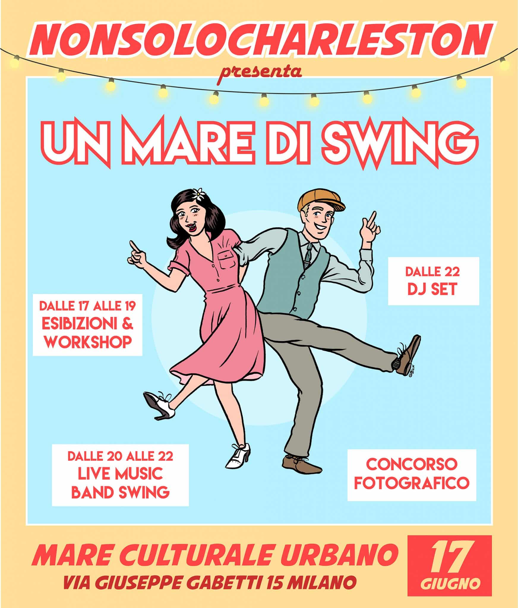 Live swing con Lucy’s Pie Tiny Orchestra, Dj set con musica mista, workshop e spettacolo.