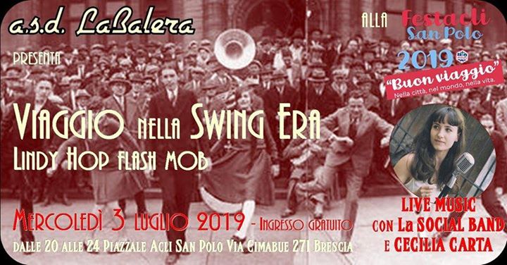 Nell’ambito della festa di quartiere organizzata dal circolo Acli di San Polo, avremo la possibilità di ballare per far conoscere il nostro movimento! una bella occasione dettata dal fatto che avremo Musica dal vivo con la Social Band con alla voce la stupenda Cecilia Carta! Il dj set per non smettere mai di ballare, gli stands gastronomici con tutto e di più, dove, se vorrete potete organizzare una cenetta a pochi soldi per riunirvi e raccontarvi di come state passando l’estate,ma sopratutto ballare su una pista in legno! Divertirvi, far divertire le persone che ci vedranno ballare… così le tiriamo tutte in questo magico tunnel dello swing!