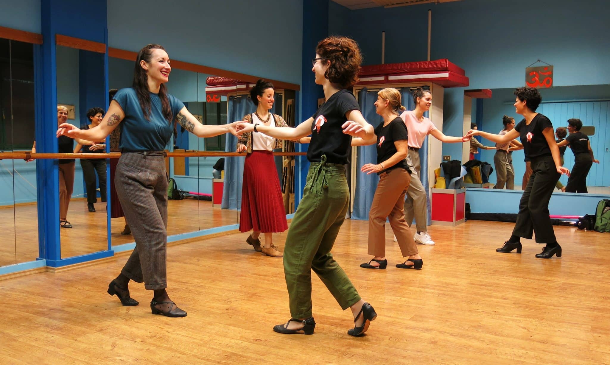 Il nostro corso si rivolge a ballerini e ballerine che abbiano già una certa esperienza nel Lindy Hop. Noi raccomandiamo da due anni in su ma ovviamente dipende dall’attitudine personale e dalla frequenza con la quale si balla; l’importante è che almeno le basi del proprio ruolo di partenza siano consolidate, per non generare confusioni e frustrazioni.
